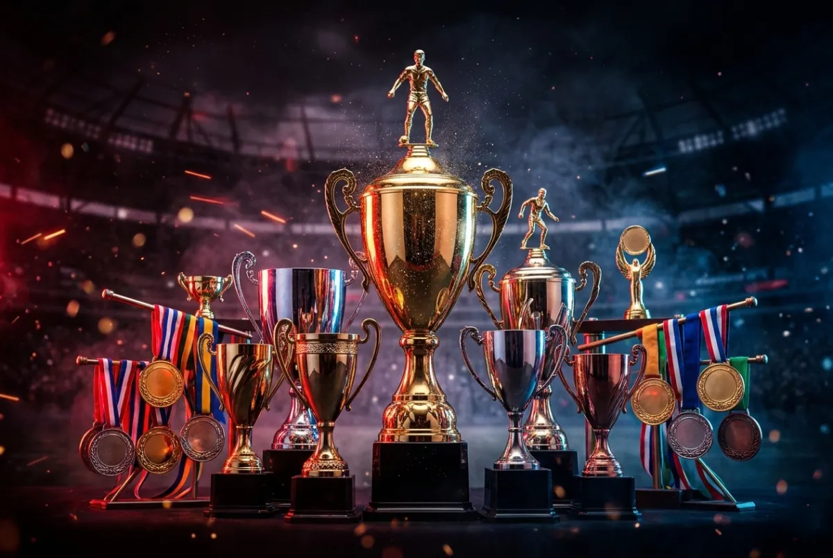 Medallas, trofeos nacionales e importados. Opciones personalizadas para campeonatos e instituciones.